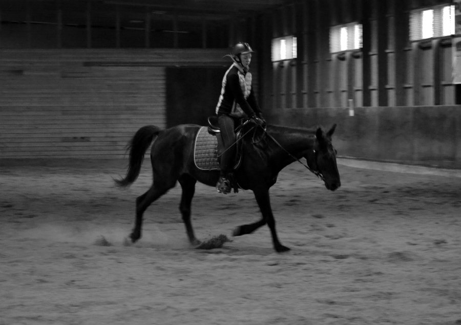 Koska ulkona alkoi uhkaavasti ripottelemaan vettä, päätimme siirtyä vielä lopuksi maneesiin. Jimppa oli aluksi vauhti päällä ulkona laukkailun jäljiltä, mutta nopeasti se rauhottui ja rentoutui. Työskentelimme miltei koko ajan ravissa, koska siinä Jimppa on helpoin saada rentoutumaan.